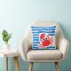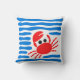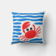 Cute Red Crab & Blue Waves Coastal Chowder Throw Pillow