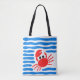 Add a splash of seaside charm to your shopping! This tote bag features a playful bright red crab surrounded by flowing blue waves, bringing fresh coastal vibes to any shopping excursion.