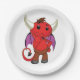 Cute Red Devil Character Thinking Mischievous Paper Plate