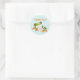 A red eye tree frog is on a lime green stripes straw. The frog has a lime green head with red eyes with white body and legs are in lime green, shades of blue and oranges. The background is light teal. The text is customizable and this is a digital illustration.