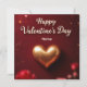 These adorable Valentine's Day gift cards with the phrase "Happy Valentine's Day" displayed in beautiful handwritten white letters surrounded by red roses, with a heart pulsating with love, on a red background.