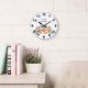 Cute Red Fox Among Flowers and Greenery Large Clock