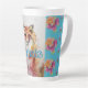 Cute Red Fox Animal Teal Rose Roses Latte Mug, with a fully customizable name. A glorious watercolor floral design. Designed from my original watercolor paintings, that I painted from my own flower garden.