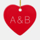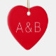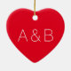 Cute red heart minimalist couple monogram initials ceramic ornament