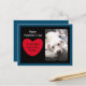 Cute Red Heart Valentine's Day White Dog Blue Postcard