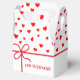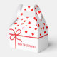 Custom white favour boxes. Red hearts and ribbon design. Edit name to personalized.