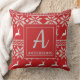 Cute Red Knit Deer Pattern Monogram Throw Pillow