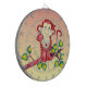 Here is a fun dartboard featuring a red monkey with a long curling tail on a tree branch surrounded by green leaves.