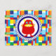 Cute Red Monster on Colourful Patchwork Blocks Postcard