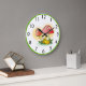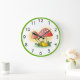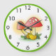 Cute Red Mushrooms White Polkadots Green Border Large Clock