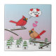 Cute Red Northern Cardinals Love Winter Landscape Tile