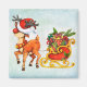 Cute red -nosed reindeer pulling sleigh Christmas Magnet