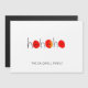 This simple yet classy Christmas card has Ho Ho Ho on the front and has a plain red back. It is hand-drawn and hand-painted in red and black and uses fun typography. It is personalized with the your family name.