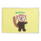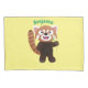 This happy, cute red panda is enjoying a bamboo snack. Drawn in adorable cuddly cartoon style.