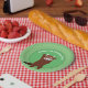 Throw one wild party with these custom paper plates featuring an illustration of a red panda standing on his hind legs, a green background with bamboo stripes accents at the edge and white lettering spelling out your own custom message. These personalized paper plates are perfect for parties for animal lovers.