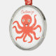 Cute Red Smiling Octopus Thunder_Cove Metal Ornament