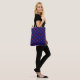 Small red strawberries in polka dot pattern on dark blue trendy tote.