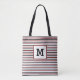 Cute Red Stripes Custom Single Initial Black Tote Bag