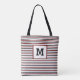 This striped single initial tote is cute and eye catching. It's a pretty and elegant design.