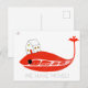 Cute red wale moved the house. Add stickmen Postcard