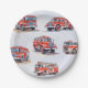 Cute Red Watercolor Firetruck Engine Paper Plate
