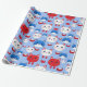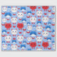 Cute Red White Blue Cat Heads Pattern Animals Kids Wrapping Paper