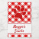 Cute Red White Gingham Chequered Pattern Paw Name Food Label