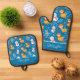 Cute Reindeer and Snowman Blue Oven Mitt & Pot Holder Set
