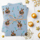 Cute Reindeer Custom Photo Frame Blue Wrapping Paper Sheet