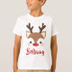 Christmas tee with a cute reindeer with a big red nose. Add your kid's name in a red script. A Christmas tee for boys and girls.