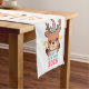 The festive holiday table cloth idea works well with the cute reindeer theme.