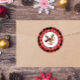 Cute rustic Christmas sticker for your Christmas letters and cards with a cute reindeer with a big red nose and a bow in her antlers. Red buffalo check trim. North Pole Air Mail written in curved text with snowflakes.