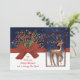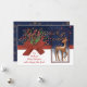 Cute Reindeer Red Bow Blue& White Holiday Card