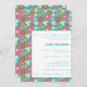 Cute Groovy Retro 60s Flowers Turquoise Blue and Hot Pink Bat Mitzvah Invitation