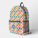 This fun, stylish custom backpack features a chequerboard pattern in retro / vintage shades of bright tangerine orange, blue, kelly green, yellow, pink, and cream. A monogram initial text template is included - use it to personalize your backpack or remove it and the circle, if you'd prefer no monogram. This cute, colourful backpack is perfect for back to school ! *Original artwork by Tracey Khalei / Orabella Prints.
