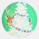 Cute Retro Christmas Peeking Baby Deer Classic Round Sticker