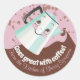 Cute vintage or retro pouring coffee pot or percolator with splatter background on this "from the kitchen of" or "from my kitchen" sticker for a variety of baked goods, personalized with your message and name.