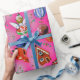 Cute retro colourful ornaments Christmas pink Wrapping Paper