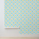 This cute retro daisy pattern teal blue and white flowers peel and stick wallpaper is perfect for a baby nursery or an accent wall in a kid's bedroom. Use it in a bedroom or a playroom to bring a whimsical feel to any kids' room space.