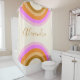 Cute Retro Double Rainbow Personalized Script Pink Shower Curtain