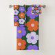 Cute Retro Flower Pattern in Purple and Green Bath Towel Set