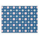 This stylish tablecloth features a cute retro geometric floral pattern in blue and pink.
