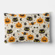 This design presents a cute and whimsical Halloween pattern filled with a delightful assortment of classic spooky icons. The background is a light cream colour, providing a soft contrast to the bold designs. The pattern includes playful jack-o'-lanterns with different expressions, black cats with bright yellow eyes, smiling skulls, and friendly bats with orange wings. Scattered throughout are spiders, crescent moons, stars, mushrooms, and magical symbols, all adding to the enchanting Halloween atmosphere. The colour palette features striking blacks, oranges, and yellows, creating a lively and festive design perfect for Halloween decorations, clothing, or party themes. The overall feel is fun and charming, ideal for celebrating the spooky season with a touch of sweetness.