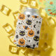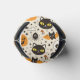 This design presents a cute and whimsical Halloween pattern filled with a delightful assortment of classic spooky icons. The background is a light cream colour, providing a soft contrast to the bold designs. The pattern includes playful jack-o'-lanterns with different expressions, black cats with bright yellow eyes, smiling skulls, and friendly bats with orange wings. Scattered throughout are spiders, crescent moons, stars, mushrooms, and magical symbols, all adding to the enchanting Halloween atmosphere. The colour palette features striking blacks, oranges, and yellows, creating a lively and festive design perfect for Halloween decorations, clothing, or party themes. The overall feel is fun and charming, ideal for celebrating the spooky season with a touch of sweetness.