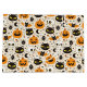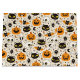 This design presents a cute and whimsical Halloween pattern filled with a delightful assortment of classic spooky icons. The background is a light cream colour, providing a soft contrast to the bold designs. The pattern includes playful jack-o'-lanterns with different expressions, black cats with bright yellow eyes, smiling skulls, and friendly bats with orange wings. Scattered throughout are spiders, crescent moons, stars, mushrooms, and magical symbols, all adding to the enchanting Halloween atmosphere. The colour palette features striking blacks, oranges, and yellows, creating a lively and festive design perfect for Halloween decorations, clothing, or party themes. The overall feel is fun and charming, ideal for celebrating the spooky season with a touch of sweetness.