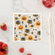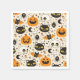 This design presents a cute and whimsical Halloween pattern filled with a delightful assortment of classic spooky icons. The background is a light cream colour, providing a soft contrast to the bold designs. The pattern includes playful jack-o'-lanterns with different expressions, black cats with bright yellow eyes, smiling skulls, and friendly bats with orange wings. Scattered throughout are spiders, crescent moons, stars, mushrooms, and magical symbols, all adding to the enchanting Halloween atmosphere. The colour palette features striking blacks, oranges, and yellows, creating a lively and festive design perfect for Halloween decorations, clothing, or party themes. The overall feel is fun and charming, ideal for celebrating the spooky season with a touch of sweetness.