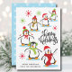 This cute retro style holiday card features happy playful penguins, the phrase "Happy Holidays" and is personalized with your name in the lower left corner. Back of card features a white snowflake pattern on a blue background. This adorable holiday card is sure to bring a smile to family and friends!