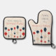 Cute Retro Merry Christmas Red Blue Ornaments Oven Mitt & Pot Holder Set