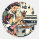 Cute Retro Mom and Daughter Baking Together Classic Round Sticker