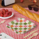 These fun birthday party paper plates feature a retro chequerboard design in pink, orange, and olive toned greens. Simple and cute - perfect for your little one's party! *Pattern by Tracey Khalei / Orabella Prints.